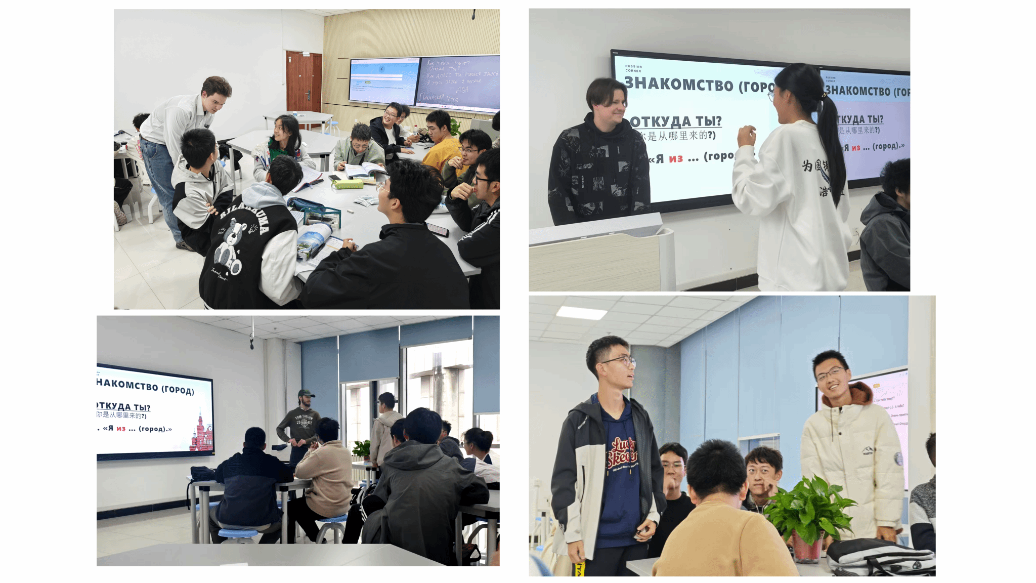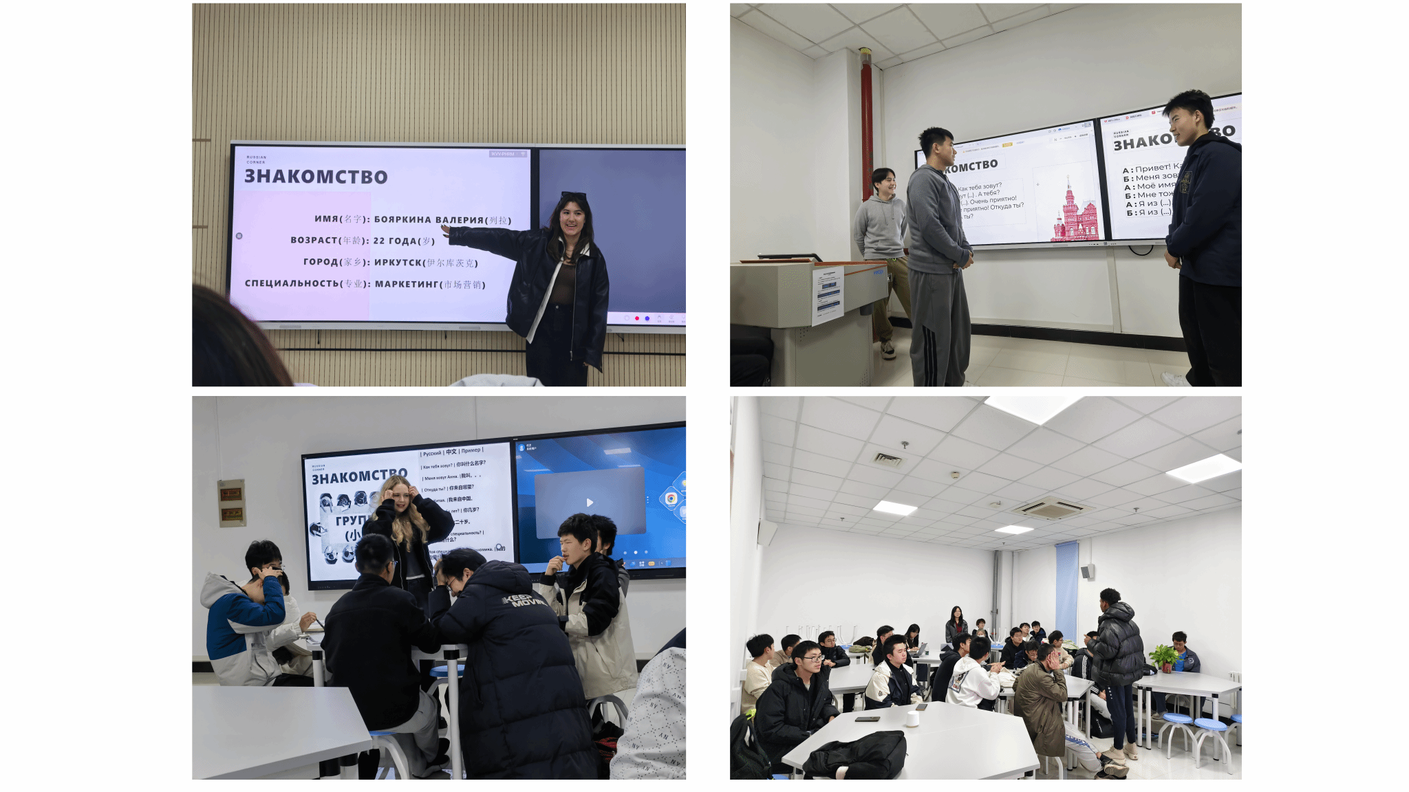 本次“俄语角”,以班为单位,将本班同学科学地划分为四个小组,并邀请了多位俄罗斯职工融入各小组进行引导与交流。首次活动的主题设定为“自我介绍”,同学们在轻松愉快的氛围中,运用所学,勇敢地介绍自己的姓名、家乡与兴趣爱好,不仅锻炼了口语表达能力,更拉近了彼此的距离。